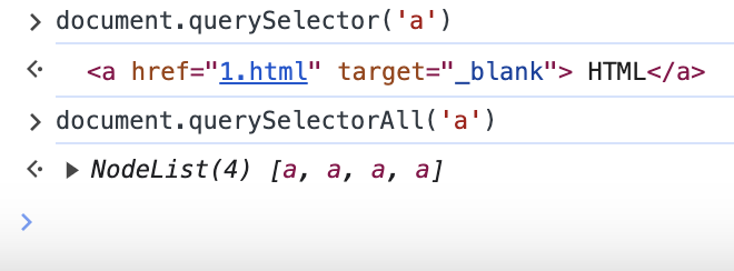 document.querySelector('a') : 제일 처음 나오는 a 태그 출력 document.querySelectorAll('a') : 문서에 존재하는 전체 a (노드 리스트) 출력 ➝ 배열은 아니지만 배열이라고 생각 alist[n]에 들어간 수의 순서에 맞는 a 태그 출력 반복문 while을 활용하여 a 태그를 모두 출력 활용 var alist = document.querySelectorAll('a'); var i = 0; while(i < alist.length) { alist[i].style.color = 'powderblue'; i = i + 1; } 위 코드를 클릭시 버튼의 이름과 배경, 글씨색이 바뀌는 if 조건문에 대입시 글씨색을 바꿀 수 있음 예시 결과 : (작동 x) 클릭시 da..